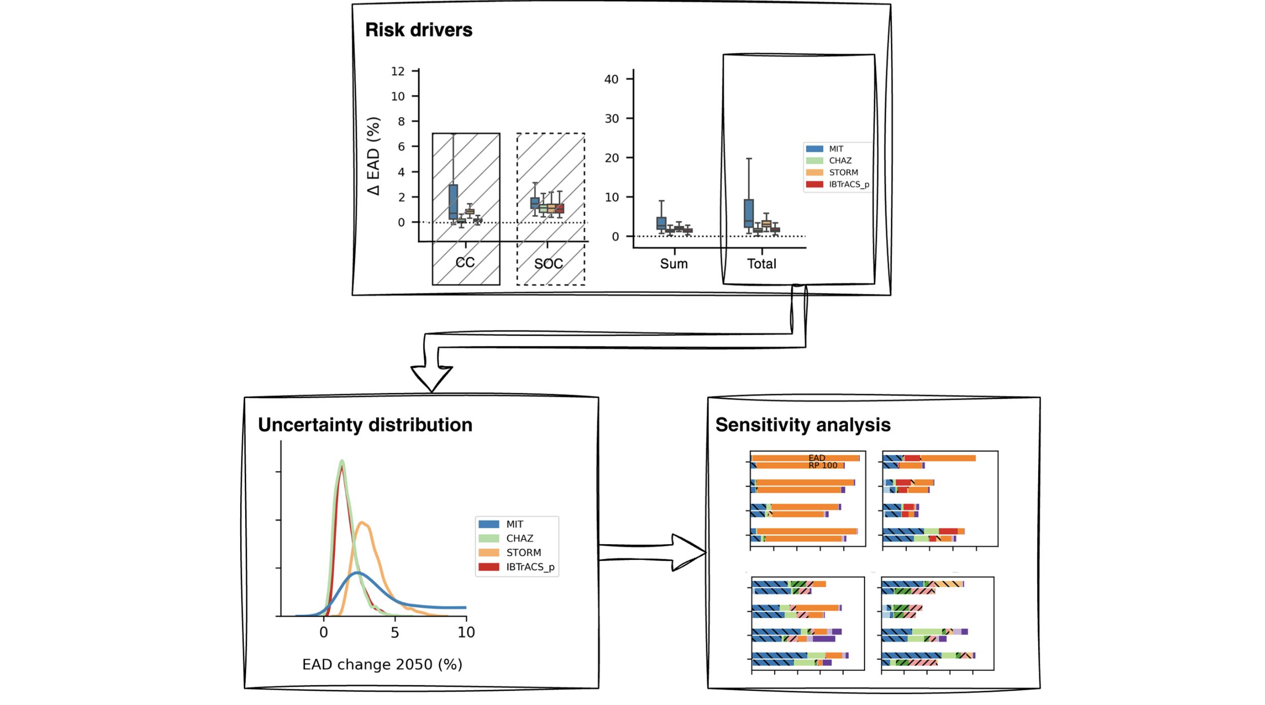 Synthetic tropical cyclone models are essential to compensate for limited observational data, yet their performance in risk assessments had not been systematically compared. My global intercomparison study (Meiler et al., 2022) addressed this gap and laid the foundation for deeper analysis of uncertainty in future risk projections (Meiler et al., 2023a; Meiler et al., 2023b; Meiler et al., 2025). I conducted a comprehensive uncertainty and sensitivity analysis across the full tropical cyclone risk modeling chain, accounting for multiple hazard models, climate and socio-economic inputs, and different types of uncertainty: randomness, limited knowledge, and normative choices. This work provides a structured framework for identifying dominant uncertainties and improving the robustness of tropical cyclone risk assessments.